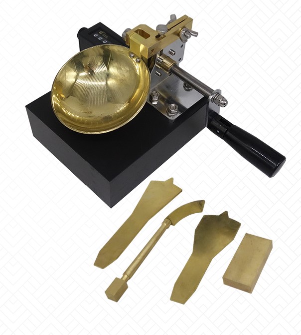 The disc type liquid limit gauge is used to measure the liquid limit of soil and classify it into soil types. It consists of a soil disc, a bracket, and a base. When in use, a sample that has been mixed into a thick paste is placed inside the disc, scraped flat on the surface, and a groove is made in the soil with a groove cutter. Then, the soil disc is lifted and dropped multiple times. When the soil groove is closed to an appropriate degree, the moisture content of the sample is measured.
